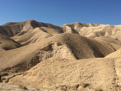 We left Jerusalem early in the morning and drove into the Judaean Desert. The landscape was no joke. Unlike the deserts of the western U.S. with which I'm pretty familiar, the Judaean Desert has no cactus, no tumbleweed, no flora or fauna of any kind. There wasn't a single remnant of life to be seen. It reminded me of the biblical images you see in The Ten Commandments, et al.
